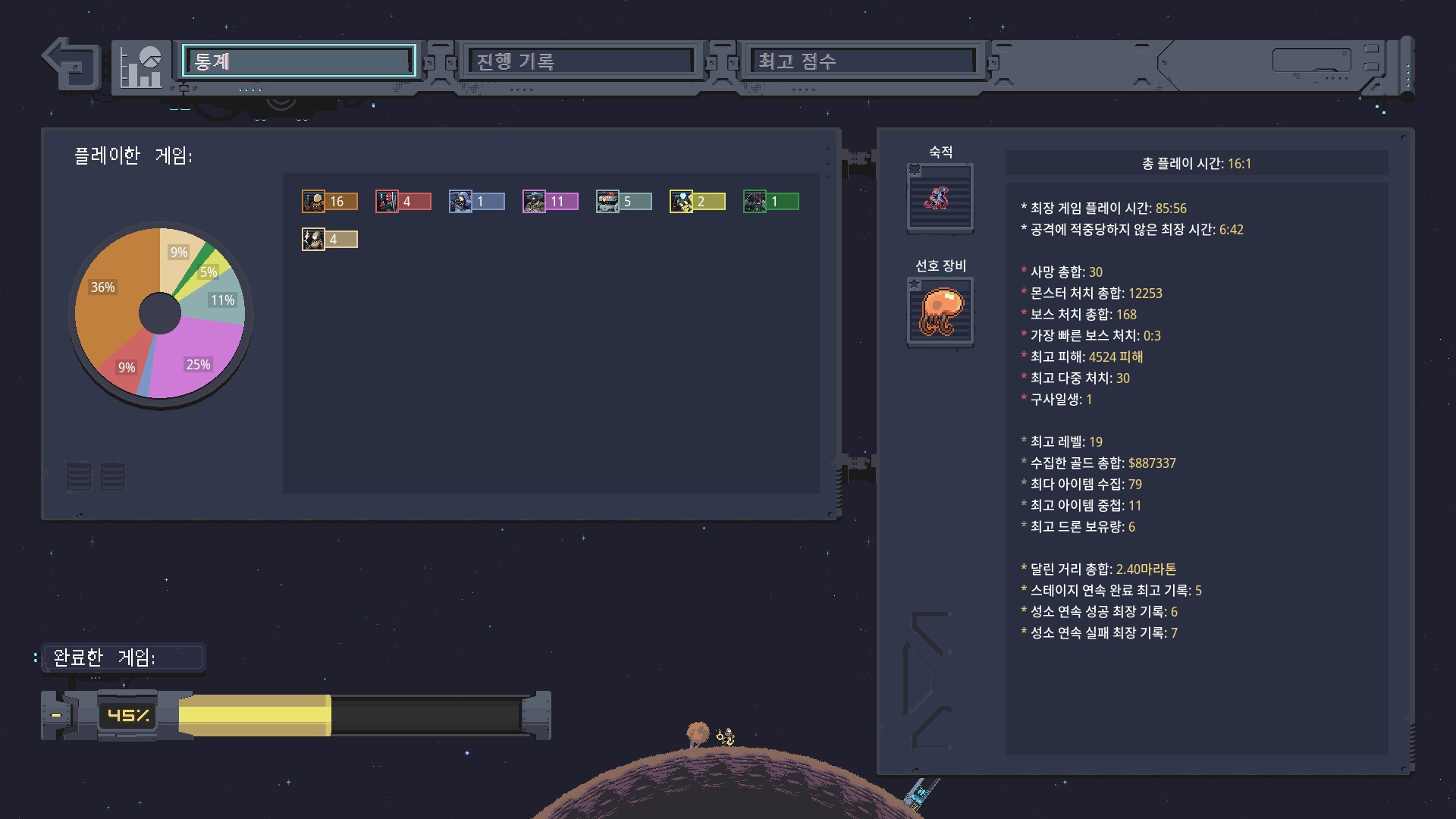싱글플레이 이슬비 난이도 4회, 폭풍우 난이도1회 클리어, 셰프와 로보만도 캐릭터 제외 모두 해금, 유물 3개 해금